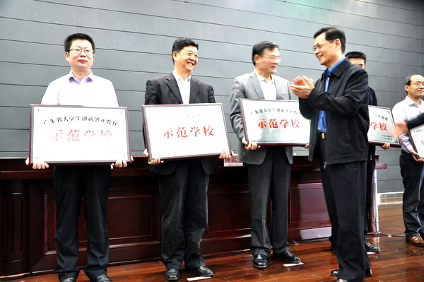 会议举行了第一批省创新创业教育示范学校的授牌仪式,陈云贤、林积、罗伟其授牌。我校和中山大学等全省十所高校获授第一批省创新创业教育示范学校。