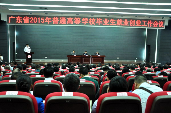 本网讯 3月31日,广东省2015年普通高等学校毕业生就业工作会议在我校召开。会议总结了2014年我省毕业生就业创业工作的经验和成绩,对2015年就业创业工作进行了部署。副省长陈云贤、省政府副秘书长林积,省教育厅厅长罗伟其、副厅长郑庆顺,省就业服务管理局局长魏建文,校党委书记苏一凡、副书记米银俊、副校长张光宇等出席会议。