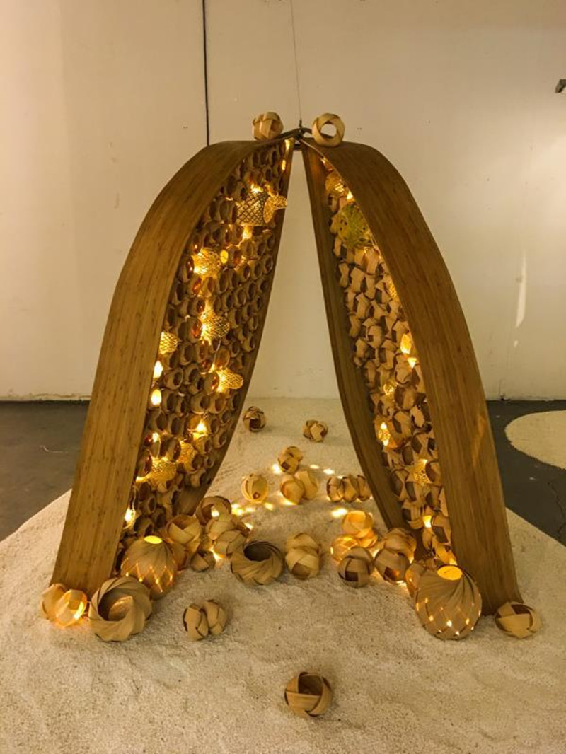 本次展览以“G Design—— 绿色(Green)、好的(Good)、立于广东 (Guangdong)”为主题,以可再生的竹子和可循环再利用的混凝土为主要材料,展出了40多件师生设计作品。展览时间截至20日,每天10:00-18:00对外开放。