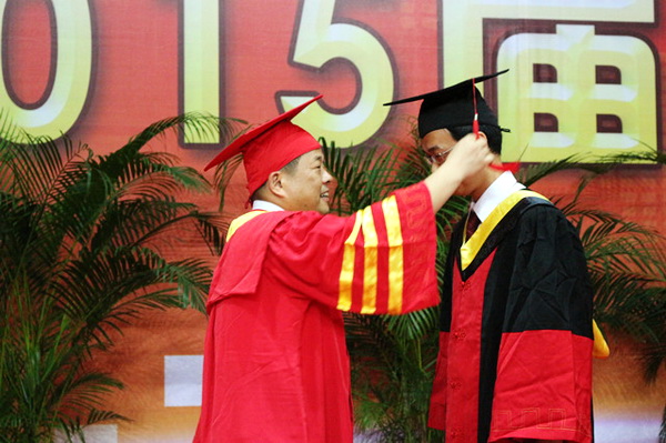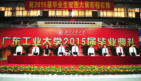 本网讯 6月25日上午,我校2015年研究生毕业典礼暨学位授予仪式在大学城校园举行,全校1500多名博士、硕士研究生顺利毕业。校领导苏一凡、陈新、汤耀平、米银俊、张力、郝志峰、张光宇、王成勇、陈卓武,相关部处和学院的负责人、老师,全体毕业研究生,及毕业生的家长亲友参加了典礼。校党委书记苏一凡宣读博士、硕士学位授予决定。副校长张光宇主持典礼。