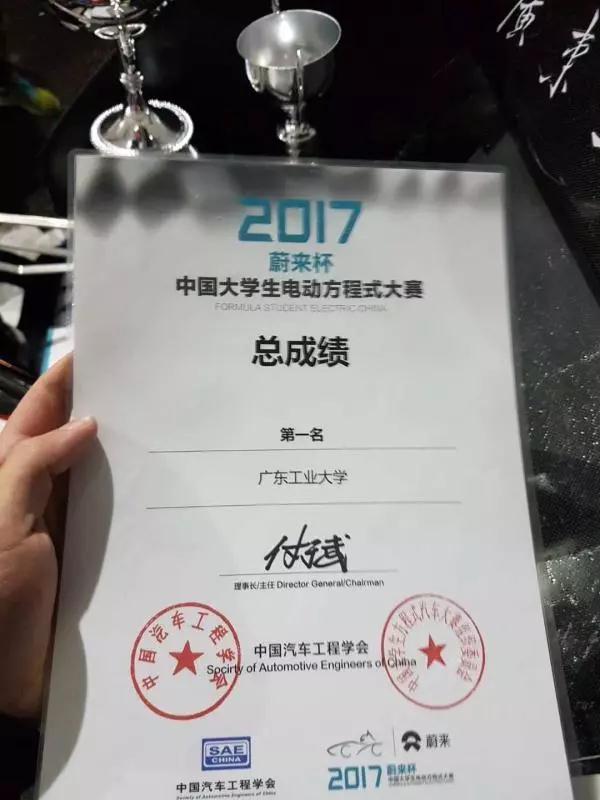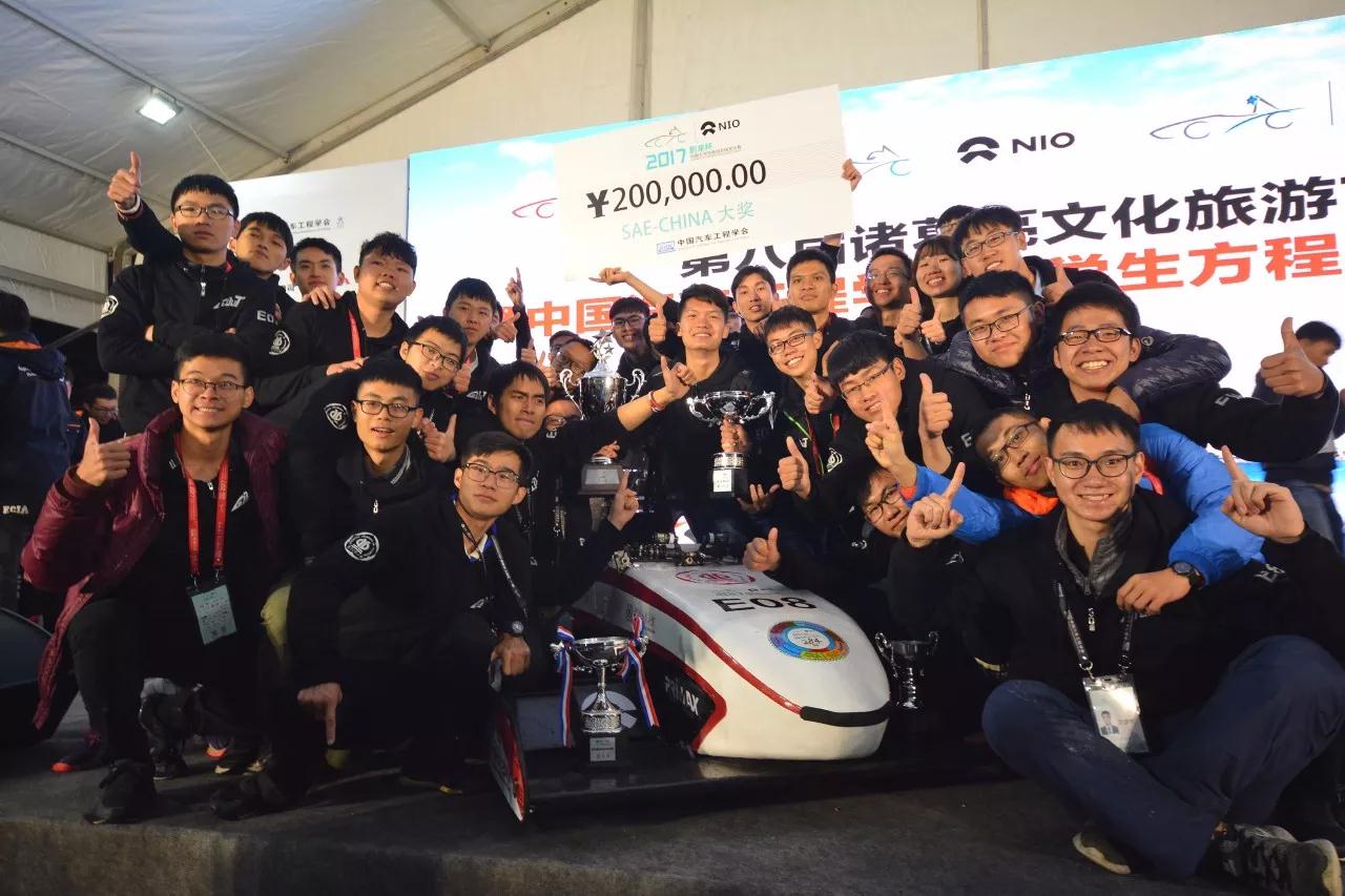 本网讯 11月17日,“蔚来杯”2017中国大学生电动方程式大赛在湖北襄阳举行。8xbet网FSAE车队以总成绩第一名,荣获全国总冠军。除了拿下总成绩第一的大奖,车队还获得效率测试奖第一名,轻量化大奖第三名,蔚来最佳电动力总成奖第三名,成本与制造分析奖第三名,Math Works车辆动力学仿真奖第三名以及最具影响力车队奖等奖项。