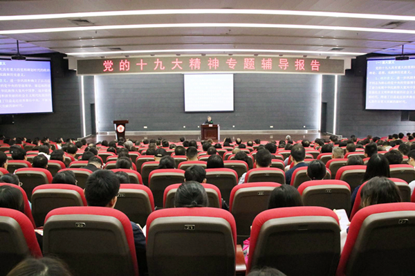 学校党委理论学习中心组成员、各二级党委理论学习中心组成员、全校副科级以上干部、全校教工党支部书记,学校关工委正、副主任,机关一总支、机关二总支全体党员,马克思主义学院全体教师、全校辅导员等参加了会议。