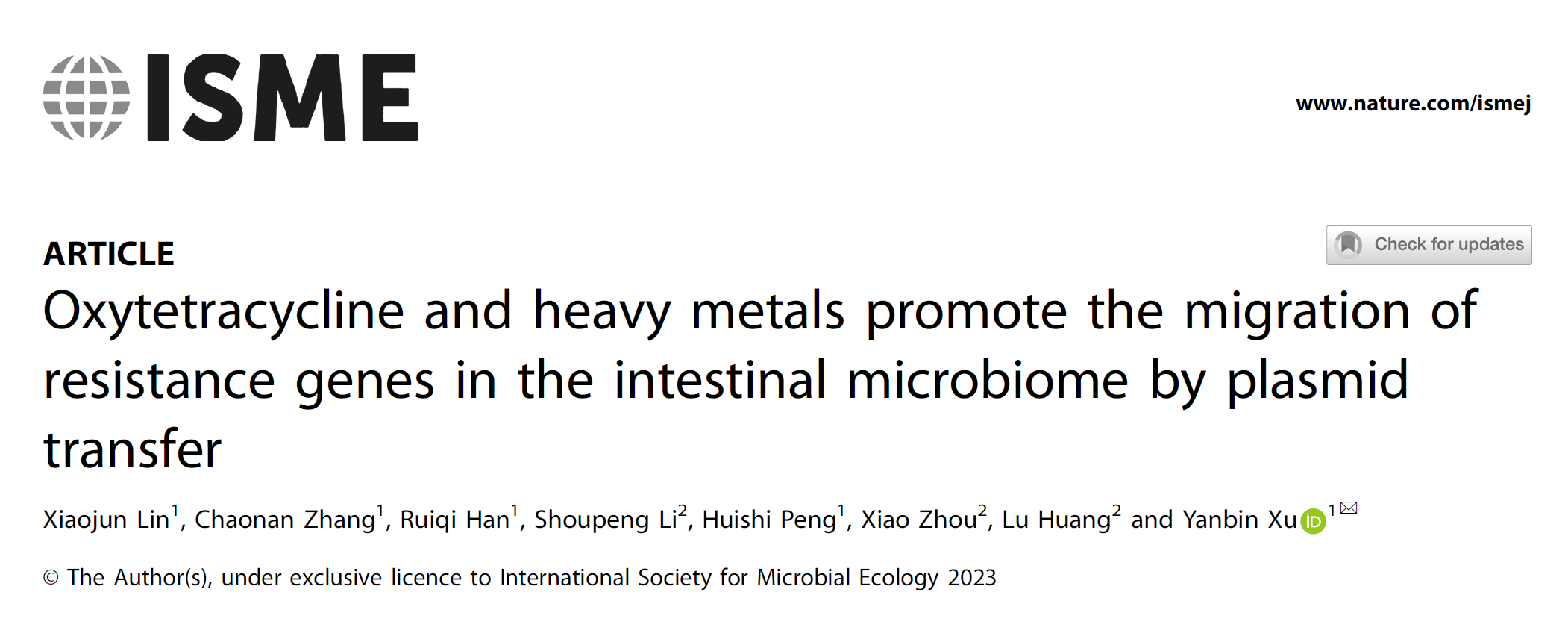 我校环境科学与工程学院许燕滨教授团队的最新研究成果“Oxytetracycline and heavy metals promote the migration of resistance genes in the intestinal microbiome by plasmid transfer”在Nature子刊、环境领域TOP期刊《The Isme Journal》上发表。该期刊近五年影响因子为12.300,CiteScore为20.40。8xbet网为第一完成单位,许燕滨教授为通讯作者,博士研究生林晓君为第一作者,论文DOI: 10.1038/s41396-023-01514-w,学校分析测试中心提供测试服务。