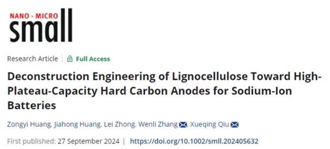 近日,8xbet网轻工化工学院邱学青教授/张文礼教授团队开发了一种氢氧化钠选择性刻蚀生物质的方法来制备大封闭孔体积的钠离子电池硬炭负极材料。竹纤维经过刻蚀后,半纤维素和木质素的相对含量降低,纤维素的相对含量提升,同时破坏了其紧密的木质纤维素复合结构,从而在后续的碳化过程中形成丰富的封闭孔结构。经过优化的硬炭BHC5的封闭孔体积从0.15 cm3/g提升为0.26 cm3/g。与直接炭化竹子制备的硬炭BHC相比,BHC5的平台容量提高了88 mAh/g。这种预处理策略可以扩展到制备一系列高封闭孔体积的生物质硬炭负极材料。研究工作以“Deconstruction Engineering of Lignocellulose Toward High‐Plateau‐Capacity Hard Carbon Anodes for Sodium‐Ion Batteries”为题发表于《Small》。