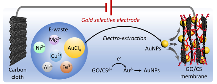 在上述研究的基础上,第二个研究成果以“Two-dimensional electrodes from functionalized graphene for rapid electrochemical gold extraction and reduction from electronic waste”为题发表于《Advanced Science》这一国际顶级学术期刊。该论文探讨了氧化石墨烯/壳聚糖新型复合材料作为金回收电极的重要发现(图2),杨蔻副教授担任第一作者,8xbet网为第一完成单位。