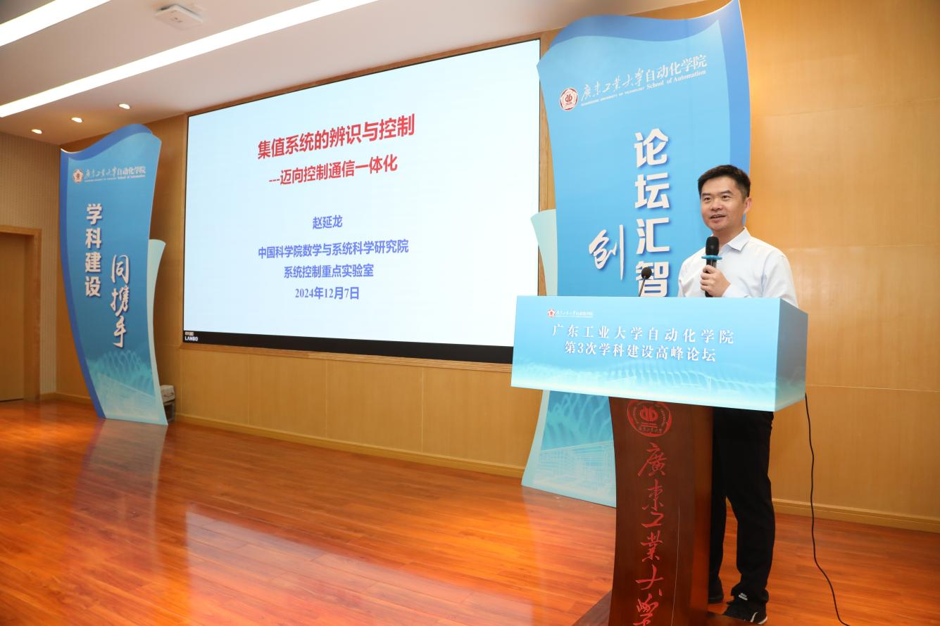 12月7日,8xbet网自动化学院第3次学科建设高峰论坛在工二报告厅举行。国家自然科学基金委、信息学部三处原处长王成红,国家自然科学基金委、信息学部三处原处长宋苏,南京航空航天大学校长姜斌教授,山东科技大学原党委常委、副校长周东华教授,合肥工业大学党委常委、副校长康宇教授,河北科技大学党委常委、副校长华长春教授,重庆大学人工智能研究院院长宋永端教授,中国科学院数学与系统科学研究院赵延龙研究员,北京理工大学自动化学院院长孙健教授,北京航空航天大学自动化科学与电气工程学院院长胡庆雷教授,山东大学控制学院学术委员会副主任刘允刚教授,华南理工大学自动化科学与工程学院刘屿教授,南京航空航天大学自动控制系书记马亚杰教授,东莞理工学院电信工程与智能化学院副院长李醒教授。8xbet网党委常委、副校长鲁仁全教授,8xbet网原党委常委、原副校长章云,自动化学院控制科学与工程学科带头人谢胜利教授、院长周郭许教授、党委副书记李香、副院长徐雍教授、何昭水教授、孟伟教授、周琪教授、陈辞教授、陶杰副教授、任鸿儒副教授、赵卓立副教授以及其他师生代表,共计200余人参会。开幕式由学院党委书记苏雷副研究员主持。