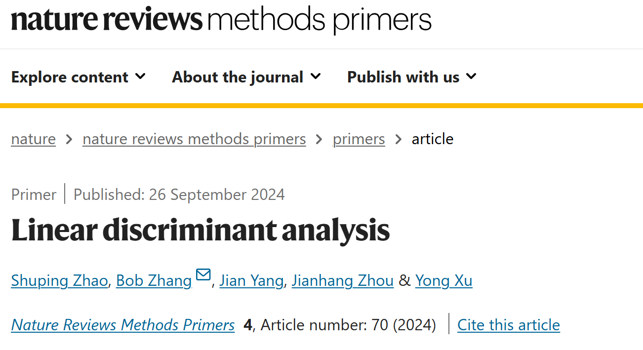 近日, 我校计算机学院(人工智能学院)赵淑平博士的论文“Linear Discriminant Analysis”发表于《Nature Reviews Methods Primers》(Nature子刊,影响因子 50.1),该论文也是以8xbet网为第一单位在该期刊发表的第一篇论文。《Nature Reviews Methods Primers》致力于加强跨学科的协作,旨在出版“生命科学和物质科学里有关分析、应用、统计、理论计算、模拟等方法或技术的权威综述”。8xbet网计算机学院赵淑平老师为该文章第一作者,通讯作者为澳门大学Bob Zhang教授,其他学者包括南京理工大学杨健教授、哈尔滨工业大学(深圳)徐勇教授以及日本大阪大学周健航研究员。