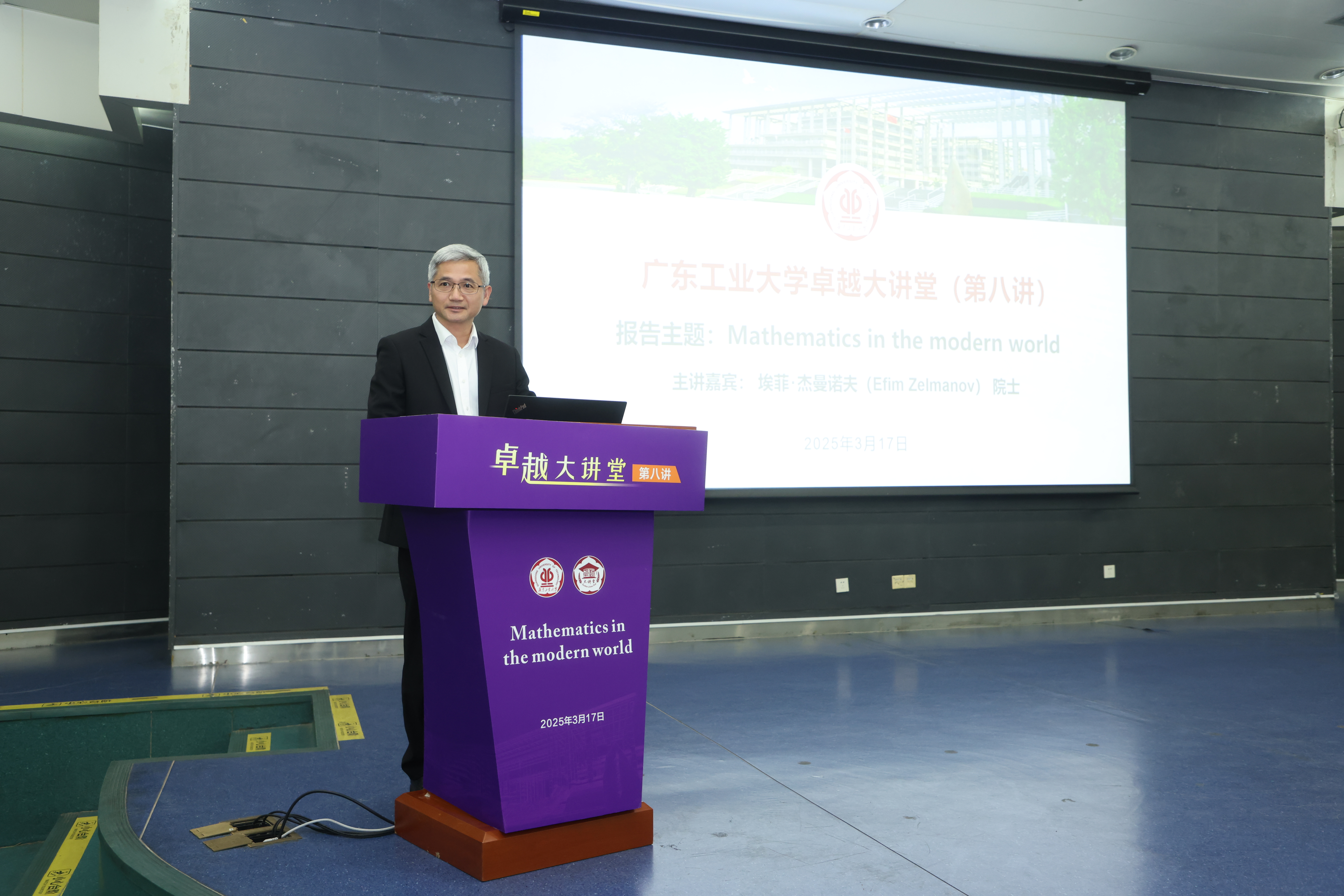 下午,杰曼诺夫院士做客“卓越大讲堂”,围绕主题“Mathematics in the modern world”,带来了一场精彩的学术报告。报告会由学校党委副书记陈卓武主持,相关部门和学院负责人、青年教师与研究生超过300人聆听报告。