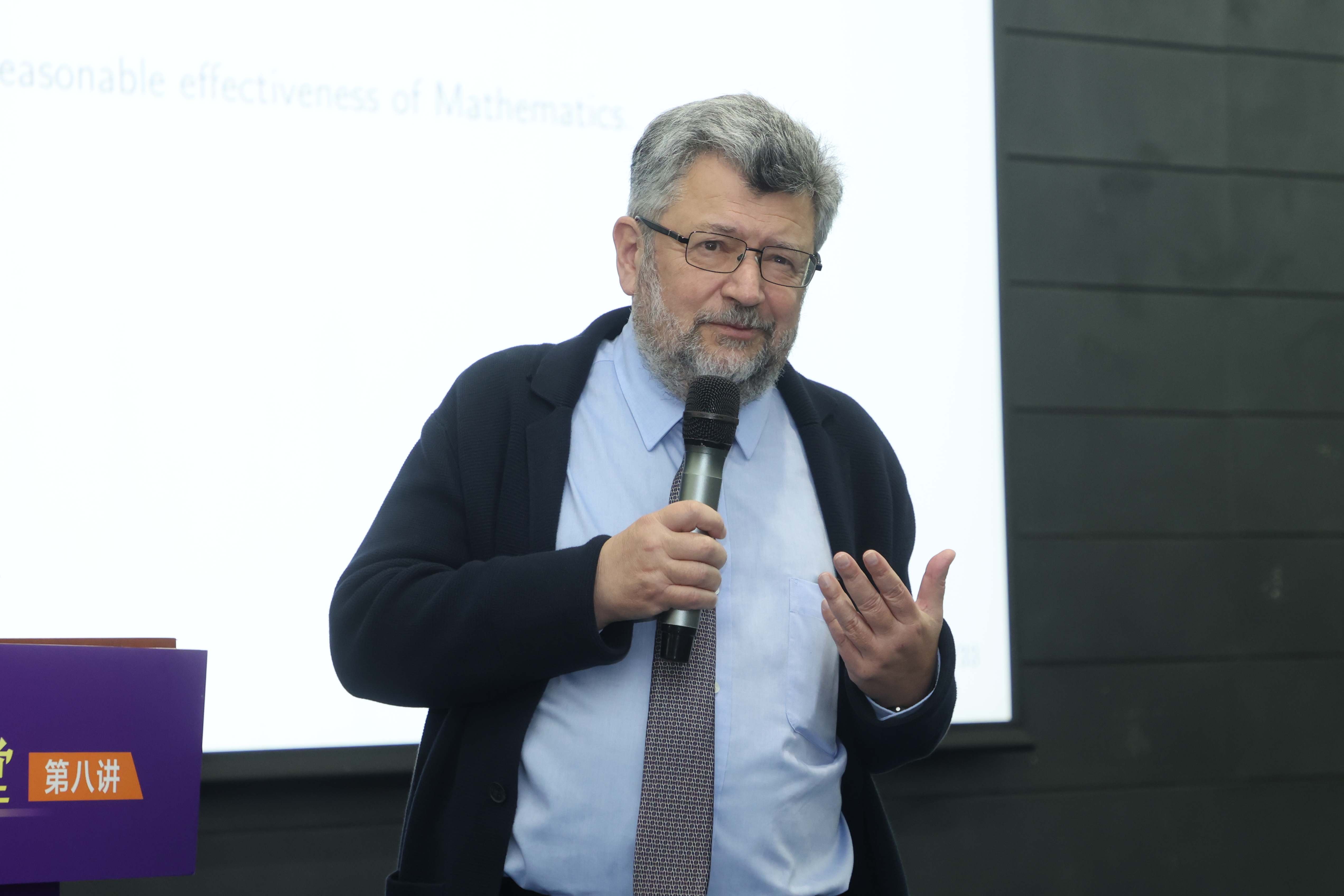 杰曼诺夫院士以法国著名数学家伽罗瓦的理论为切入点,介绍了数学在密码学、医学、人工智能等领域的应用,深刻揭示了数学在现代社会中的重要作用及深远影响。他表示,数学之美在于一语道破玄机的美妙,在于从学科交叉中迸发的灵感,在于探索事物的本质。在互动环节,杰曼诺夫院士对师生提出的问题作了耐心解答。