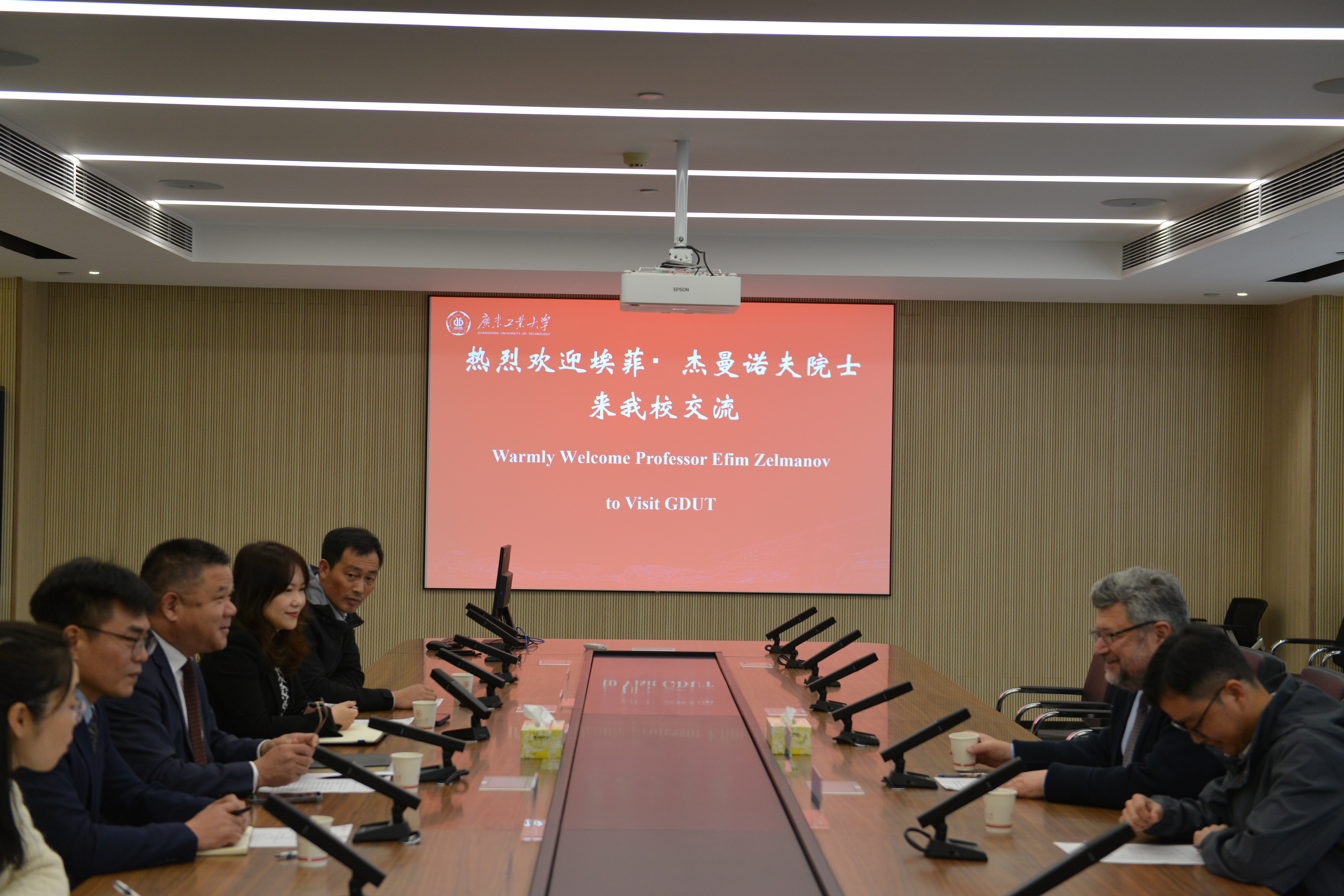 上午,学校党委常委、副校长杜承铭会见了杰曼诺夫院士,陪同交流的还有国际合作与交流处、数学与统计学院相关负责人及老师。