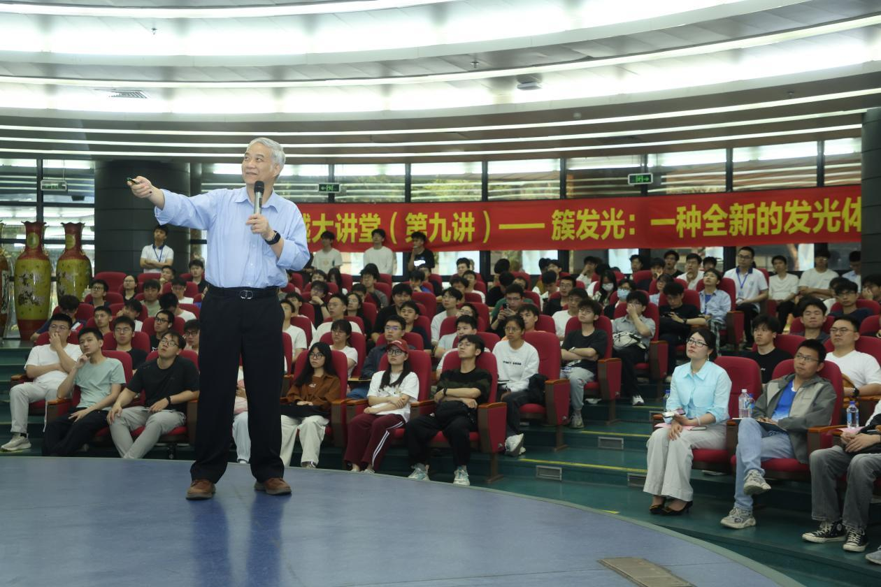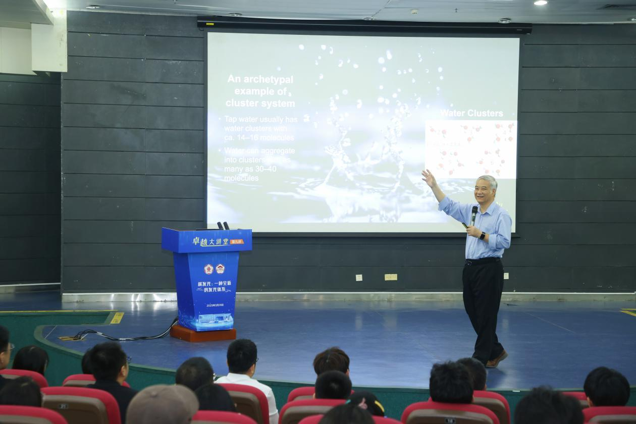 唐本忠院士将分子聚集方式差异的影响这一学术问题,以所有人都熟悉的“水”为例子切入,深入浅出又生动形象地点出了本场讲座主旨——分子的聚集方式差异具有很高的科研及应用价值。接着以分子聚集后受激发呈现“簇发光”的现象为例,详细介绍了不同聚集条件对发光现象的影响。基于此特性,“簇发光”材料在化学、生物医学和材料科学等领域的巨大应用潜力。
