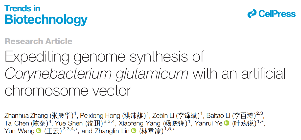 Expediting genome synthesis of Corynebacterium glutamicum with an artificial chromosome vector. Trends Biotechnol. https://doi.org/10.1016/j.tibtech.2025.02.019