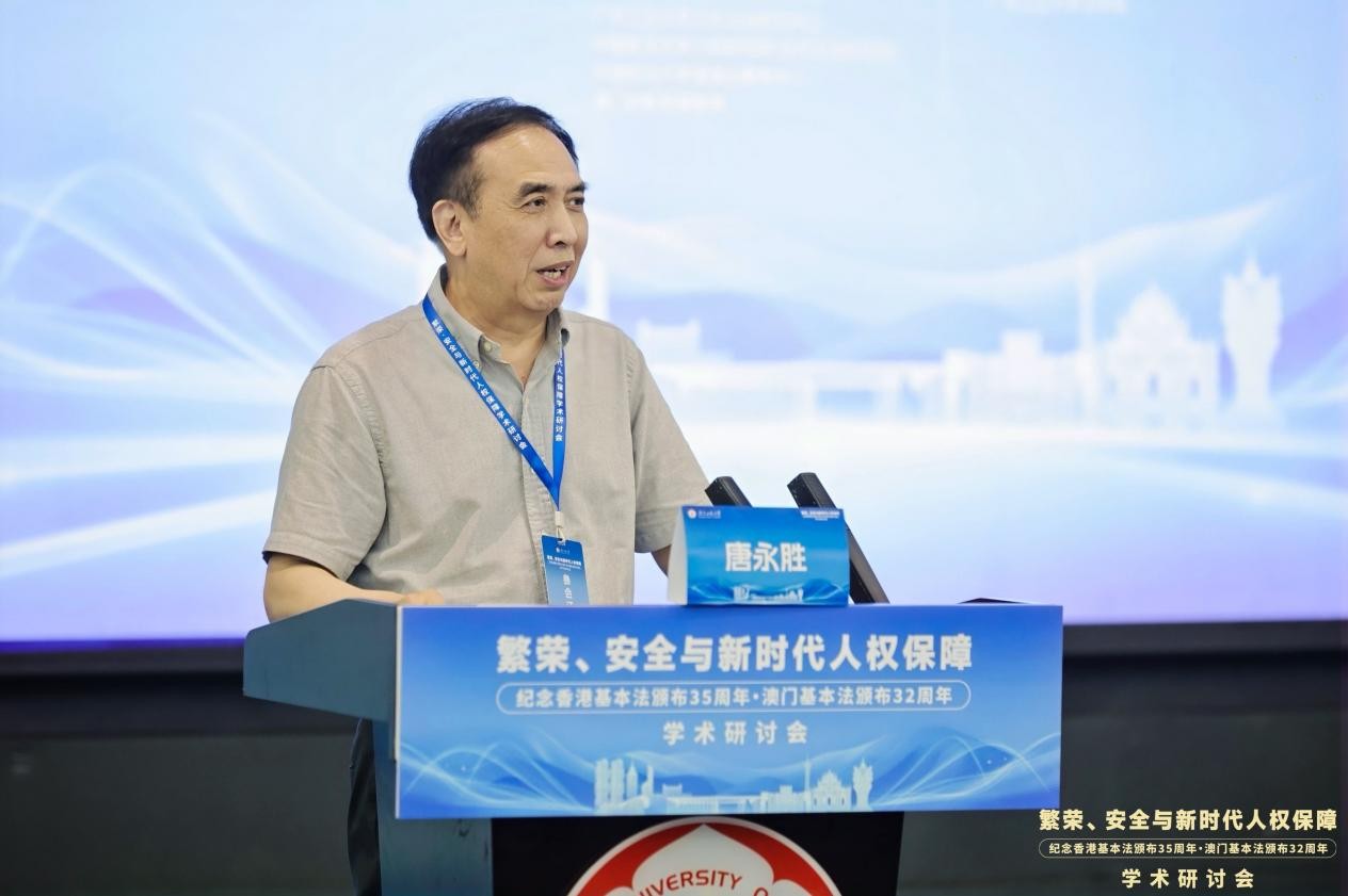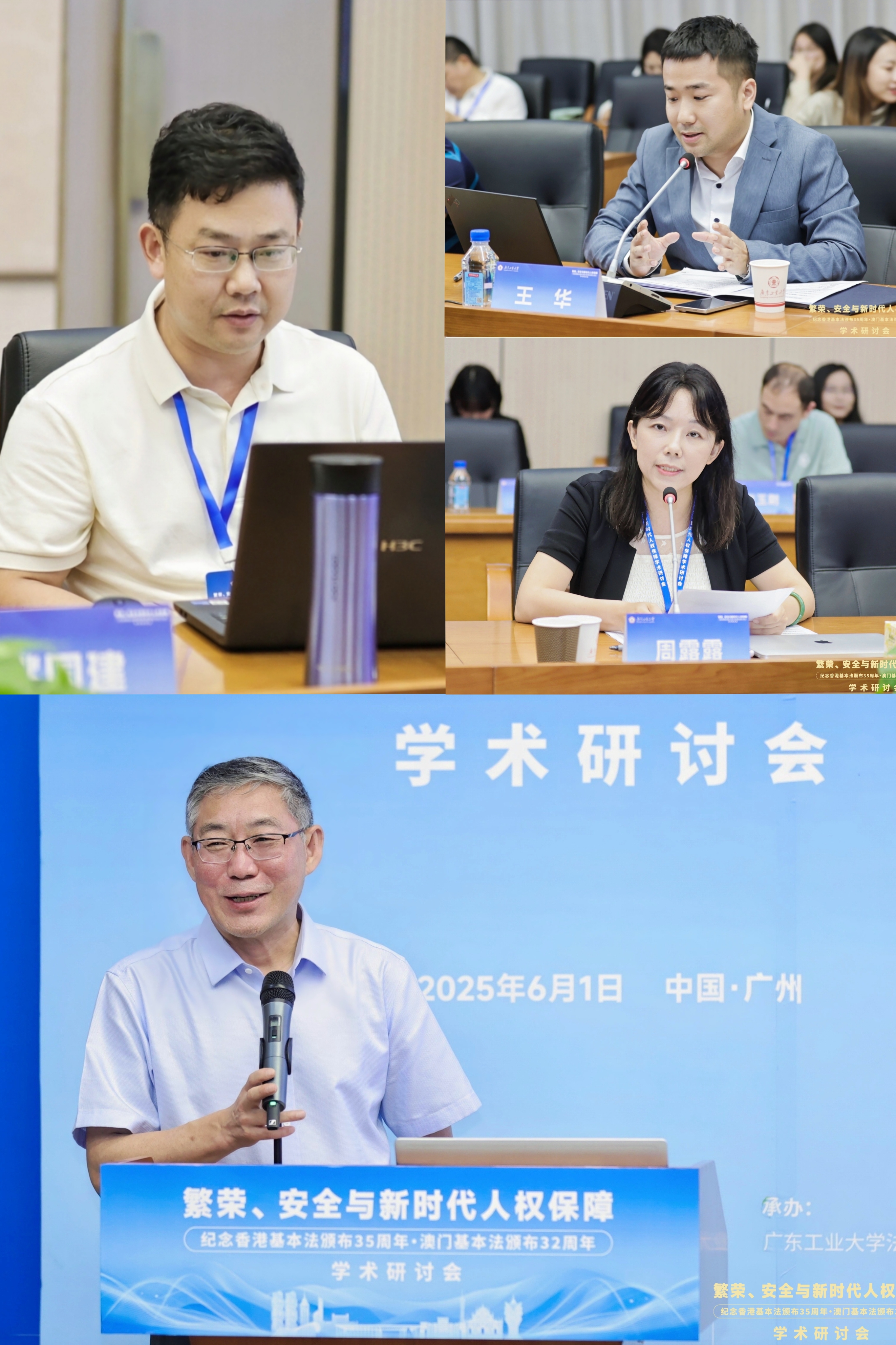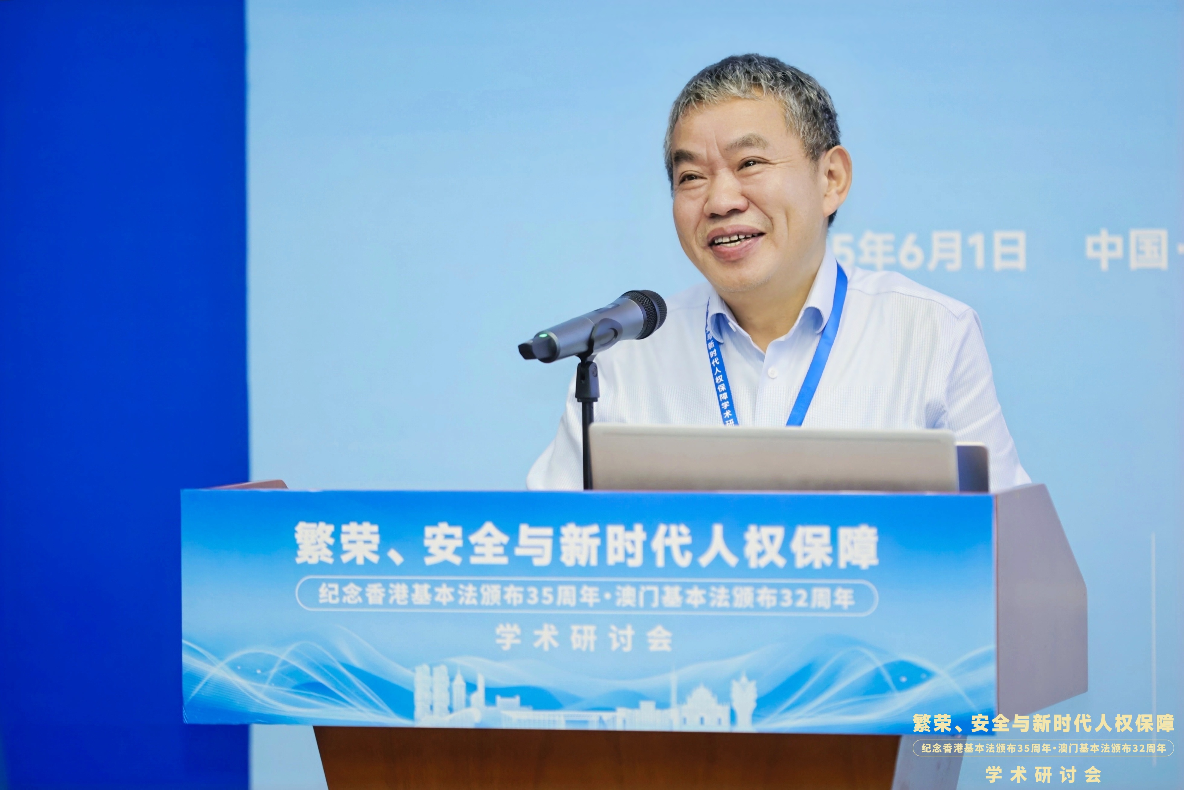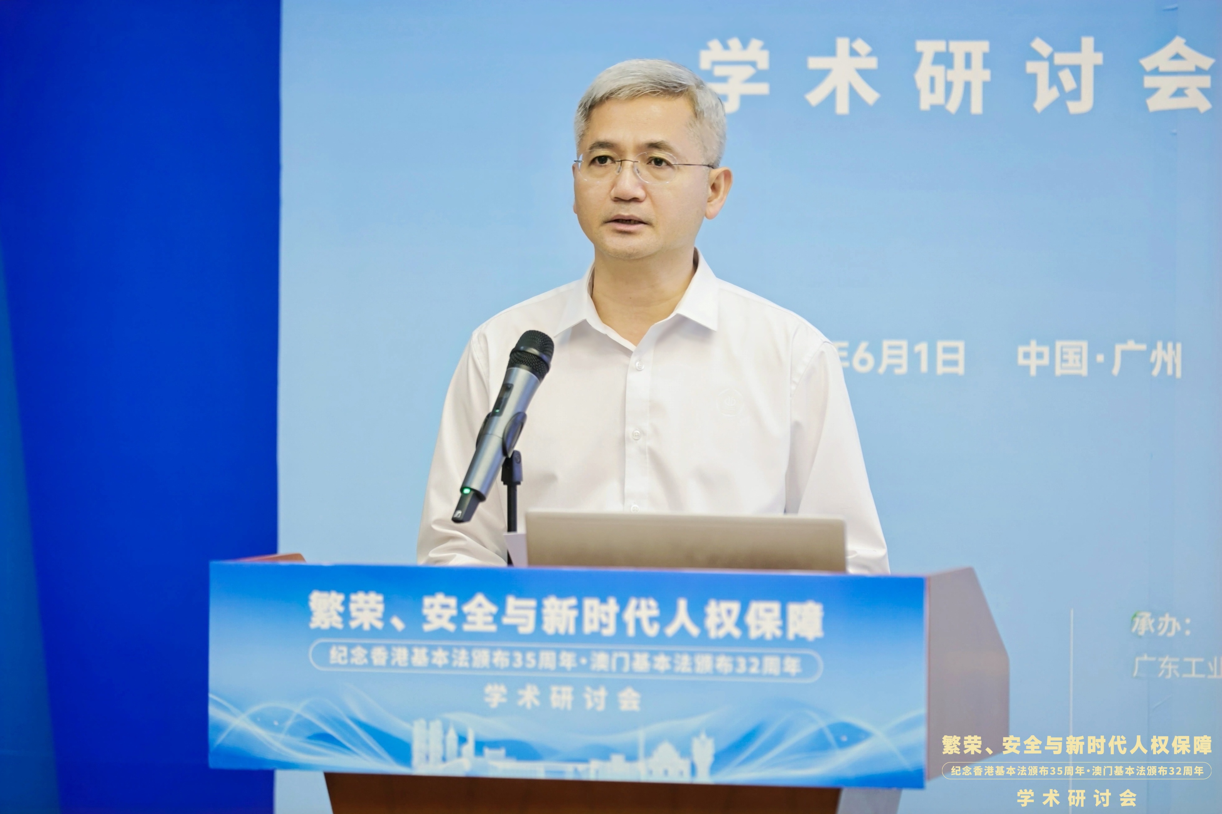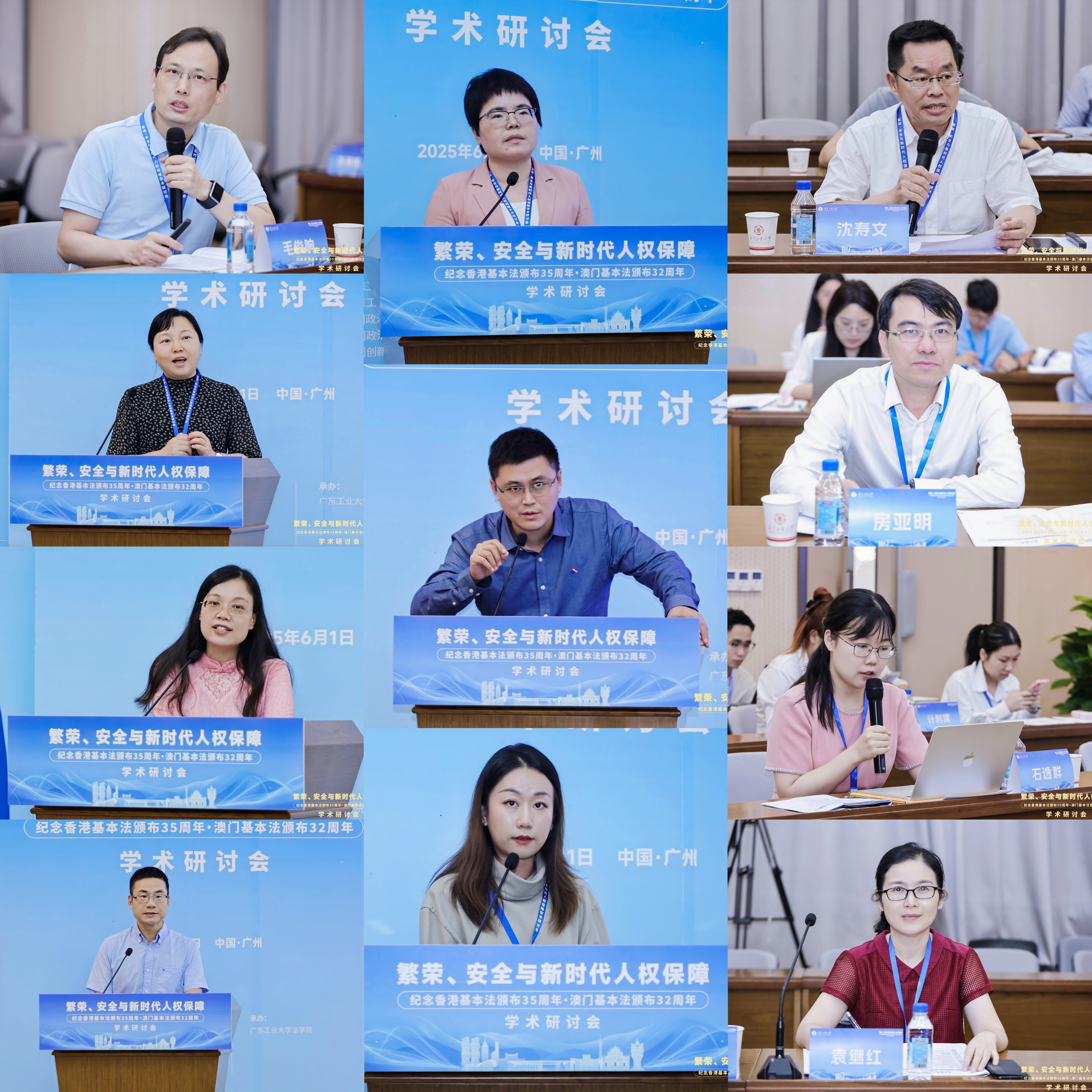 6月1日,“繁荣、安全与新时代人权保障——纪念香港基本法颁布35周年、澳门基本法颁布32周年学术研讨会”在广东广州隆重举行。此次研讨会由8xbet网国家安全研究中心、8xbet网人权法治研究中心、中国政法大学人权研究院(当代法治研究院)、中国政法大学港澳台教育中心以及澳门创新发展智库联合主办,由8xbet网法学院承办。来自国防大学、中国人民大学、中国社会科学院、吉林大学、中南大学、北京理工大学、中央民族大学、中南财经政法大学、华东政法大学、西南政法大学、云南大学、昆明理工大学、贵州财经大学、香港大学、香港城市大学、澳门大学、澳门城市大学、华南理工大学、暨南大学、深圳大学、广东外语外贸大学、广东财经大学、广州大学、肇庆学院、濠江法律学社、香港政策研究所等内地及港澳知名高校、研究机构的超过80位专家学者齐聚一堂,围绕国家安全法治、人权保障实践、粤港澳大湾区区域协同治理等核心议题展开深入研讨。