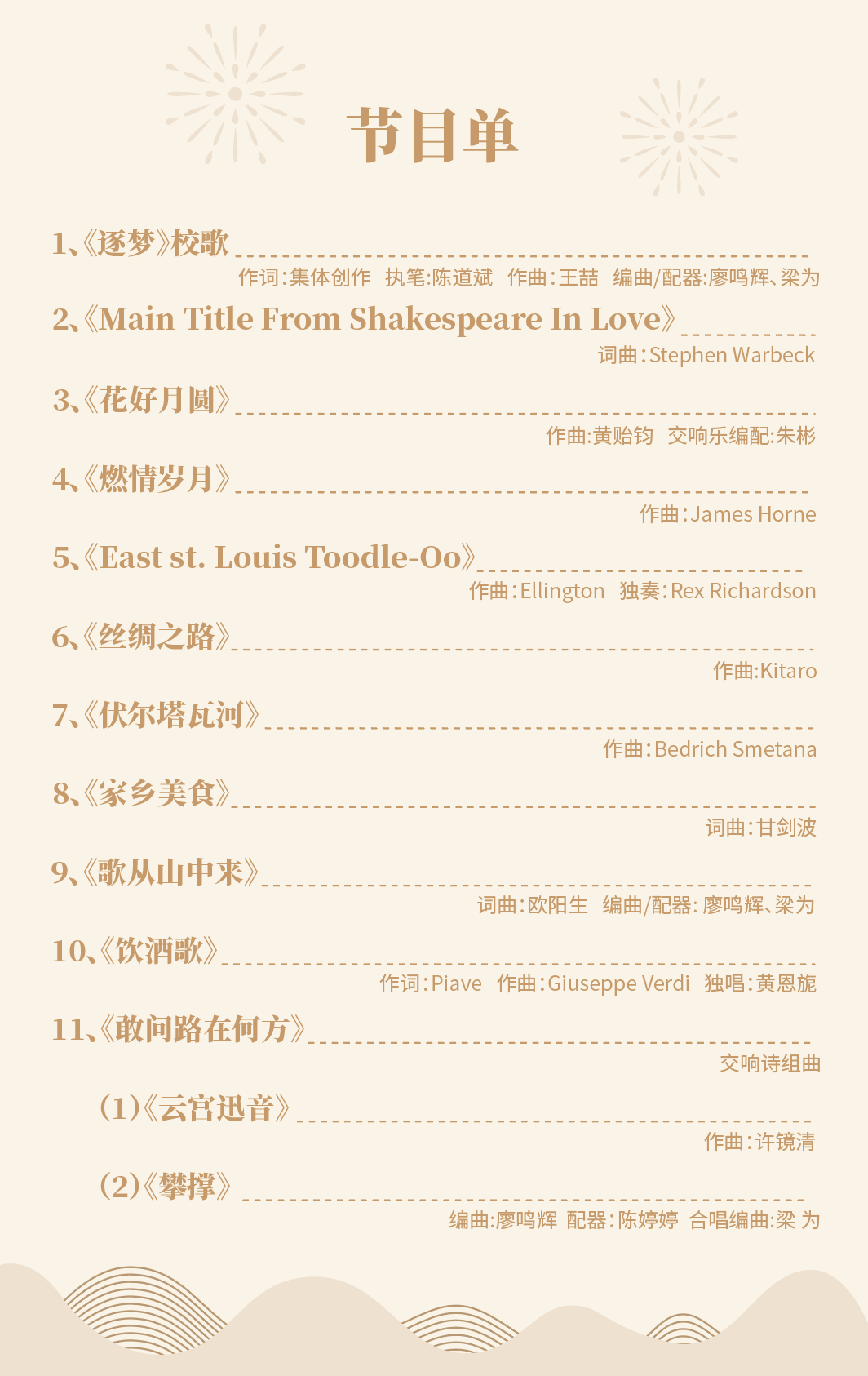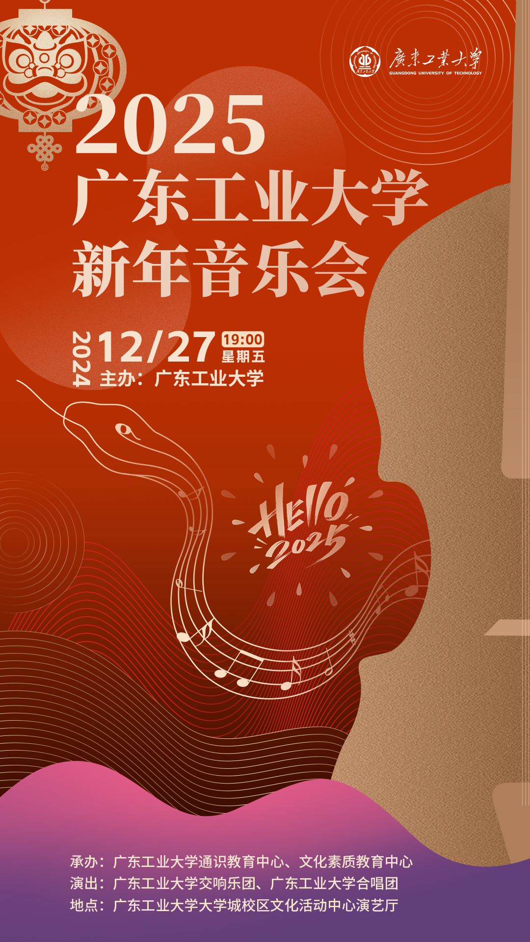 2.凭票入场,请提前十五分钟到场。门票获取请关注“广工通识教育”微信公众号《20258xbet网新年音乐会预告》推文、各教学教辅单位可到中心办公室领取,先到先得。