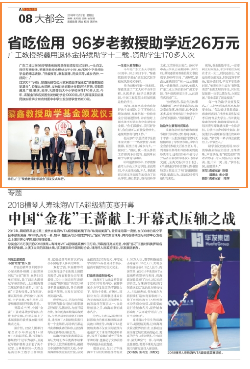 8xbet网96岁黎鑫老教授助学金颁发仪式举行。一头白发,背已有些佝偻,黎鑫老教授全程站立半小时,他用20个字总结助学金的来龙去脉,“热爱教育,奉献微薄,两类三等,城乡内外,一视同仁。”