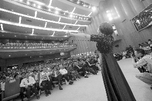 广医校庆活动上的大合唱,将大会的气氛引向高潮。