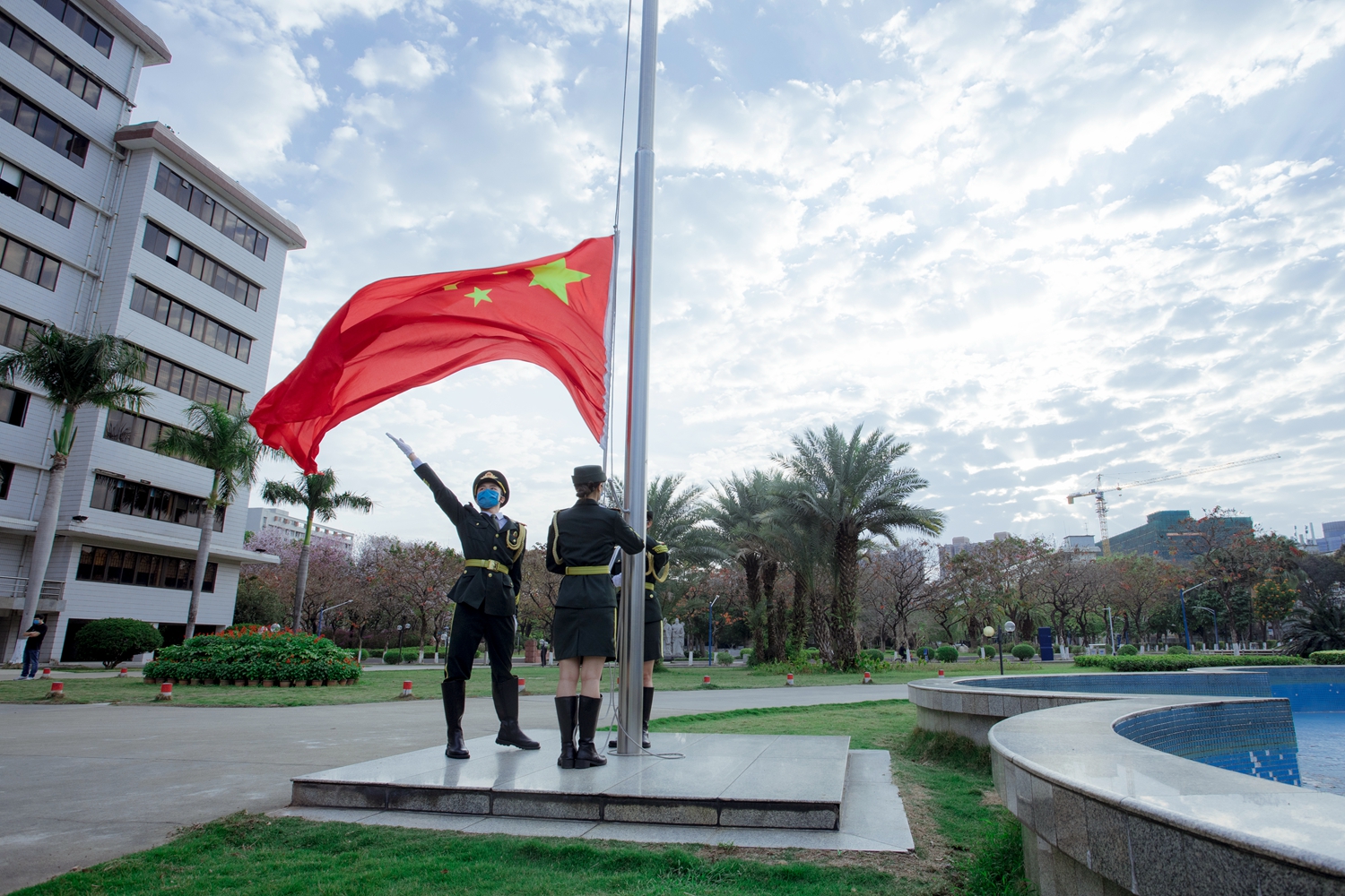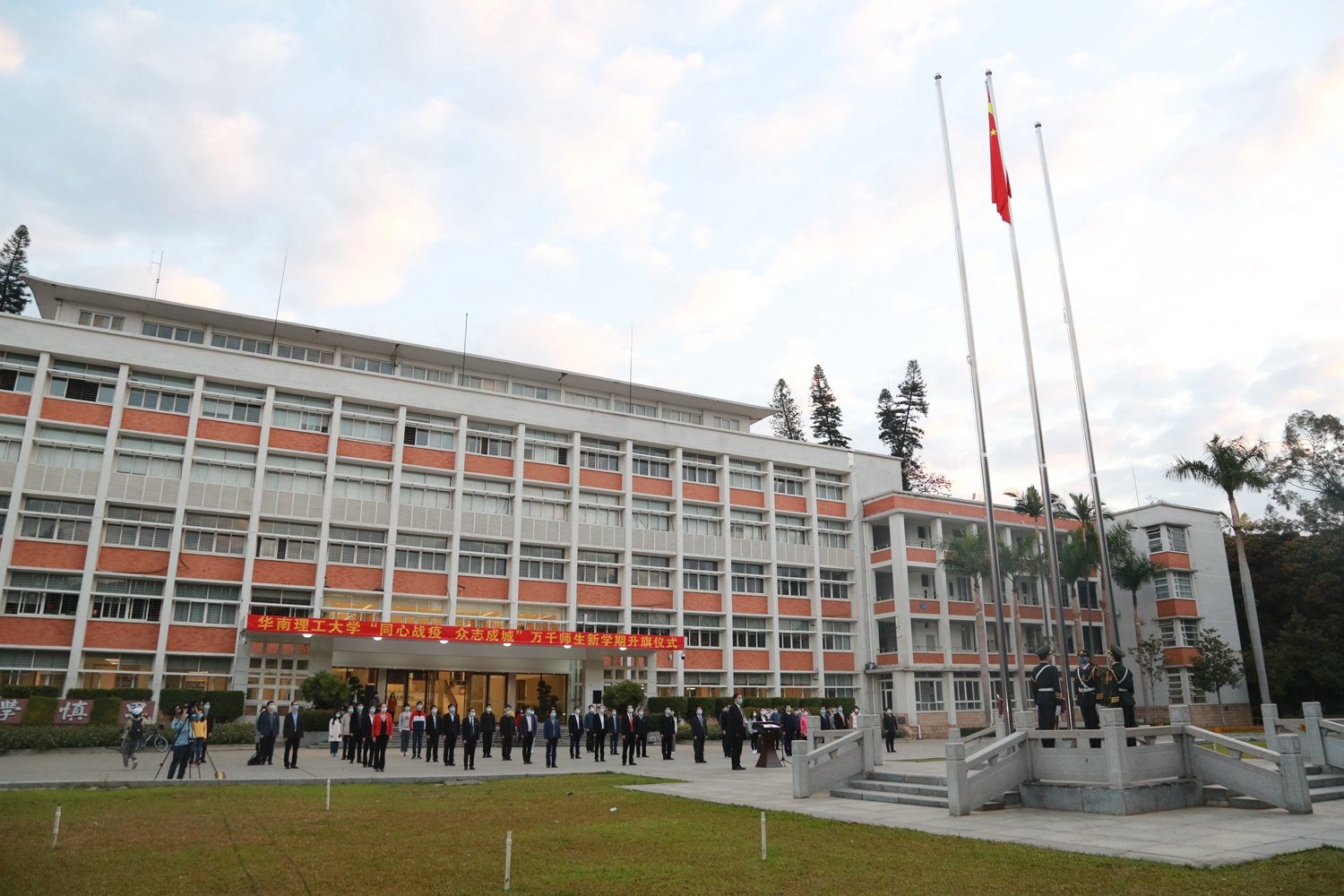 开学首日,华南理工大学、华南师范大学、广州医科大学等高校均举行了升旗仪式,引领师生共抒爱国情怀,共话使命担当,以满腔斗志与祖国共同战“疫”,与学校共克时艰。