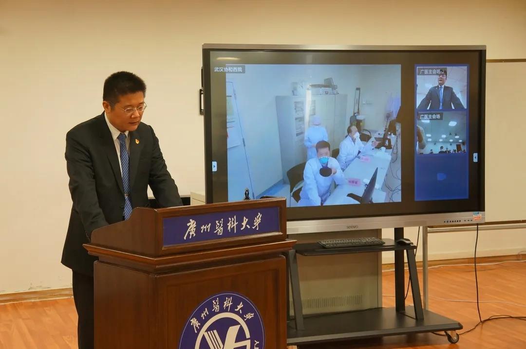 广医开学第一课,连线武汉协和西院广医医疗队广州医科大学的开学第一课现场连线正在武汉协和西院ICU的广医医疗队,通过队员们的现身说法对学生进行爱国主义教育、职业精神教育。领队张挪富教授激励同学们:“大疫当前,国家召唤,医务人员要像战士一样去战斗,希望同学们发扬南山风格和抗非精神,练就本领,保障人民的身体健康,发挥广医人的战斗力。”