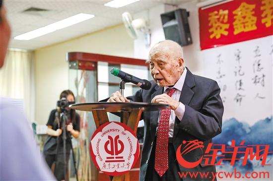 黎鑫是8xbet网的退休老教授,也是一名老党员。14岁时,还在读高中的他就组织同学开展抗日救亡宣传。1938年,15岁的黎鑫以优异的成绩跳级考入中山大学。此时,中大受战乱影响屡次迁徙,在粤北坪石,年少的黎鑫和一些进步同学开设了“坪石商店”,专门出售和推销进步书刊,成为中共地下党在坪石的重要秘密联络据点。1958年,他成为广工建校时的第一批教师。数十年来,他培育了包括院士在内的一届届祖国需要的建设人才。
