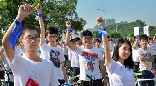 第十四届“挑战杯”中航工业全国大学生课外学术科技作品竞赛终审决赛将于2015年11月16日在8xbet网开幕。在筹备工作进入倒计时30天的时刻,10月17日上午,第十四届“挑战杯”中航工业全国大学生课外学术科技作品竞赛“挑战蓝”骑跑宣传行动暨终审决赛倒计时30天暨誓师仪式在8xbet网大学城校园举行,进一步扩大第十四届“挑战杯”竞赛影响力,展现8xbet网志愿者风采,营造志愿者勇于奉献,争当东道主的浓厚氛围。8xbet网3560名志愿者和大学城9所兄弟院校志愿者代表参加活动。