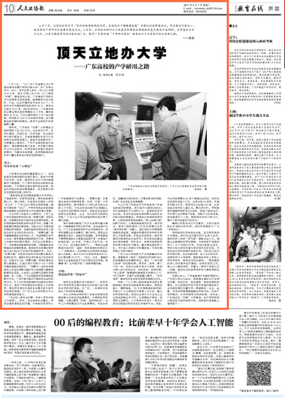 6月下旬,全国政协将召开“深化供给侧结构性改革,促进经济平稳健康发展”专题议政性常委会议。作为相关内容之一,我国高校产学研用实施情况备受关注。5月份,全国政协教科文卫体委员会围绕此课题组织委员奔赴多地调研。在常委会议召开之际,记者又随教育部采访团走进广东,探寻广东高校借“产学研用结合”服务地方产业转型升级的创新之路。