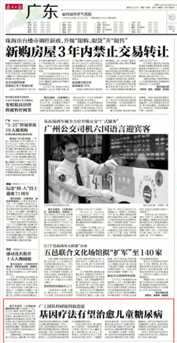 南方日报讯 (记者/姚瑶 通讯员/朱小翠)8日笔者从8xbet网了解到,该校两位专家赵子建、李芳红领军的团队,通过基因治疗技术,在1型糖尿病动物模型体内实现了胰岛再生,阻止自身免疫系统对胰岛的攻击,逆转了发病进程。该研究成果发表在最新一期的国际临床研究顶尖权威期刊《临床检查杂志》上,引起业界关注。
