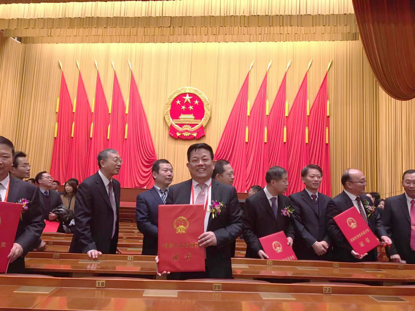 广工大陈新教授在2019年度国家科学技术奖励大会现场(采访对象供图)
