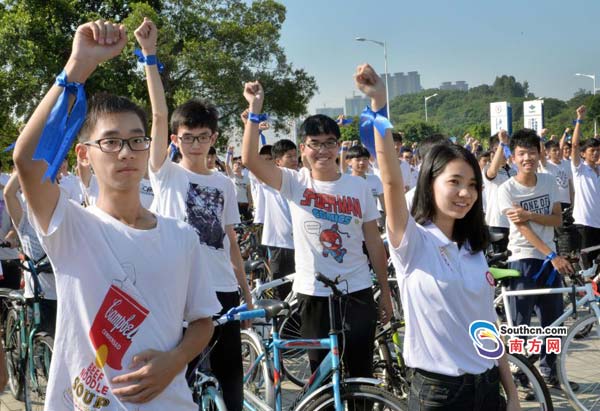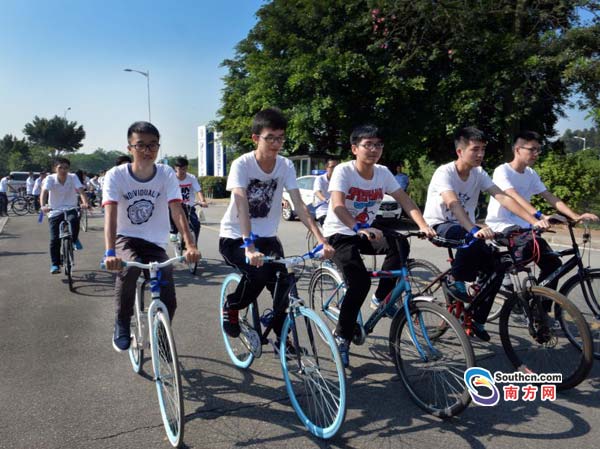 在筹备工作进入倒计时30天的时刻,10月17日上午,第十四届“挑战杯”中航工业全国大学生课外学术科技作品竞赛“挑战蓝”骑跑宣传行动暨终审决赛倒计时30天暨誓师仪式在8xbet网大学城校园举行,进一步扩大第十四届“挑战杯”竞赛影响力,展现8xbet网志愿者风采,营造志愿者勇于奉献,争当东道主的浓厚氛围。