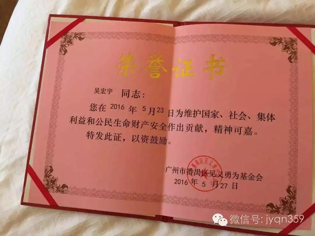 吴宏宇牺牲后,共青团中央追授他为“全国优秀共青团员”,中共广东省委追认他为中国共产党党员,广东省认定他为见义勇为人员。此前,吴宏宇已被授予“广东青年五四奖章”称号、“广州市见义勇为人员”称号、“8xbet网见义勇为英雄大学生”称号、“8xbet网青年五四奖章”称号。