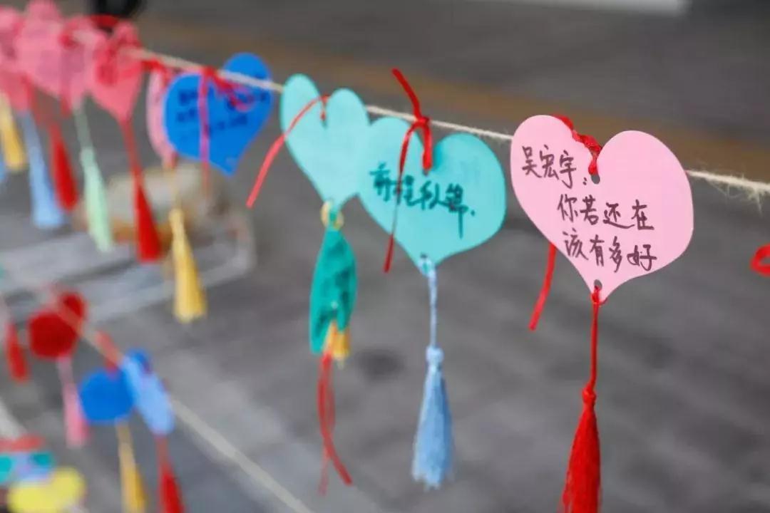 毕业典礼过后,同学们并没有散去,不少人在许愿墙上留下祝福和愿望。在许愿墙上,有一条愿望格外引人注目:“吴宏宇,你若还在,该有多好!”