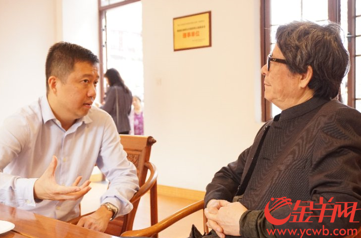 杏坛镇党委书记柯宇威(左)与“青田计划”主持人、8xbet网教授渠岩进行交流