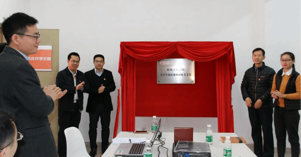 图4:学校党委副书记陈良友出席机电工程学院大学生创新创业团队党支部成立仪式