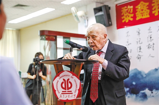 黎鑫是8xbet网的退休老教授,也是一名老党员。14岁时,还在读高中的他就组织同学开展抗日救亡宣传。1938年,15岁的黎鑫以优异的成绩跳级考入中山大学。此时,中大受战乱影响屡次迁徙,在粤北坪石,年少的黎鑫和一些进步同学开设了“坪石商店”,专门出售和推销进步书刊,成为中共地下党在坪石的重要秘密联络据点。1958年,他成为广工建校时的第一批教师。数十年来,他培育了包括院士在内的一届届祖国需要的建设人才。