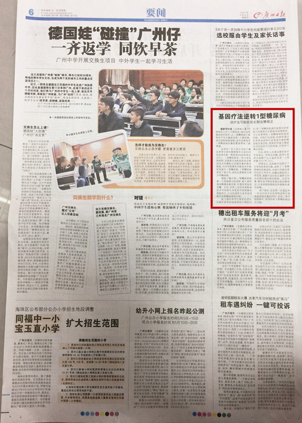 下一条:南方日报|基因疗法有望治愈儿童糖尿病