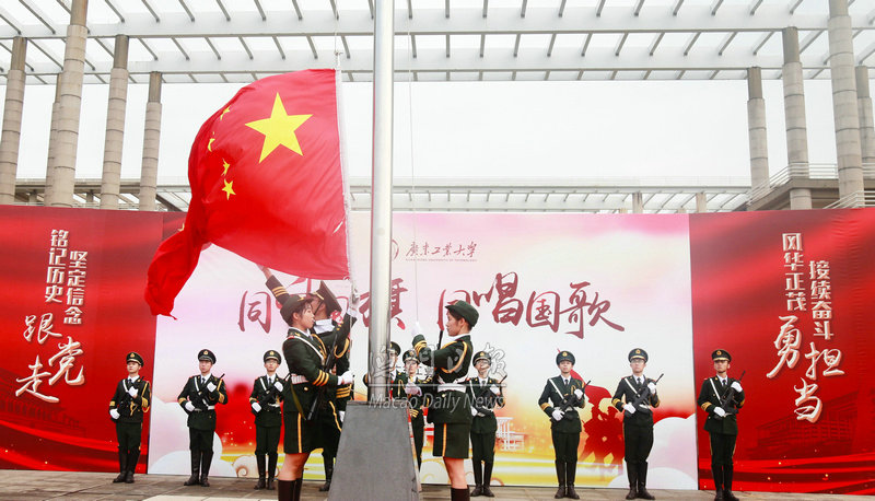 【澳門日報消息】廣東工業大學各個校區今日上午分别舉行“同升國旗同唱國歌”主題活動。廣工學校領導分别前往各校區,與近兩千名師生代表參加升旗儀式。有擔任升旗手的澳門學生表示,很榮幸親手將國旗升起,整個過程充滿了民族自豪感。