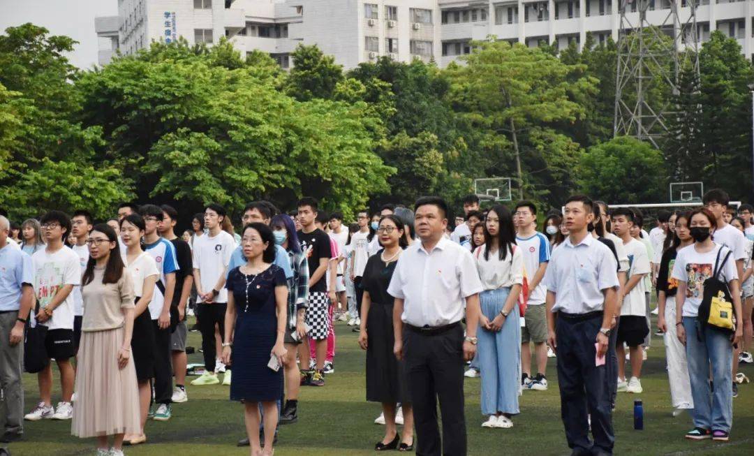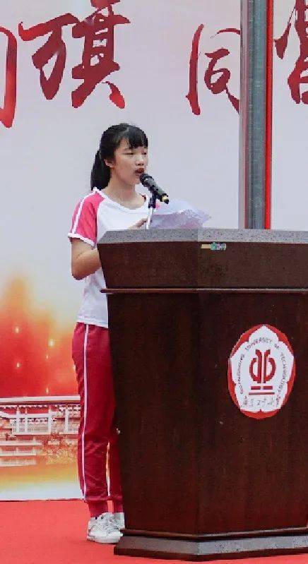 学生代表苏力旦江、戴娆和张丹鹏在国旗下表白祖国,抒发爱国情怀。他们表示,新时代青年要永怀爱国之心,将个人前途与祖国命运紧密联系在一起,自觉承担责任履行义务。他们呼吁所有青年人志存高远,练就过硬本领,用“只争朝夕,不负韶华”的态度珍惜学习时光,将爱国之情转化为报国之行,为粤港澳大湾区建设贡献力量,为祖国更加繁荣富强而努力奋斗!