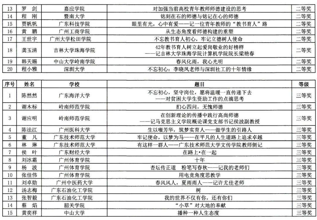 老师们看过来!广东省教育厅委托广东教育杂志社组织开展的“自觉爱国守法,潜心教书育人”第九届师德主题征文及微视频征集活动获奖名单正式公布啦~