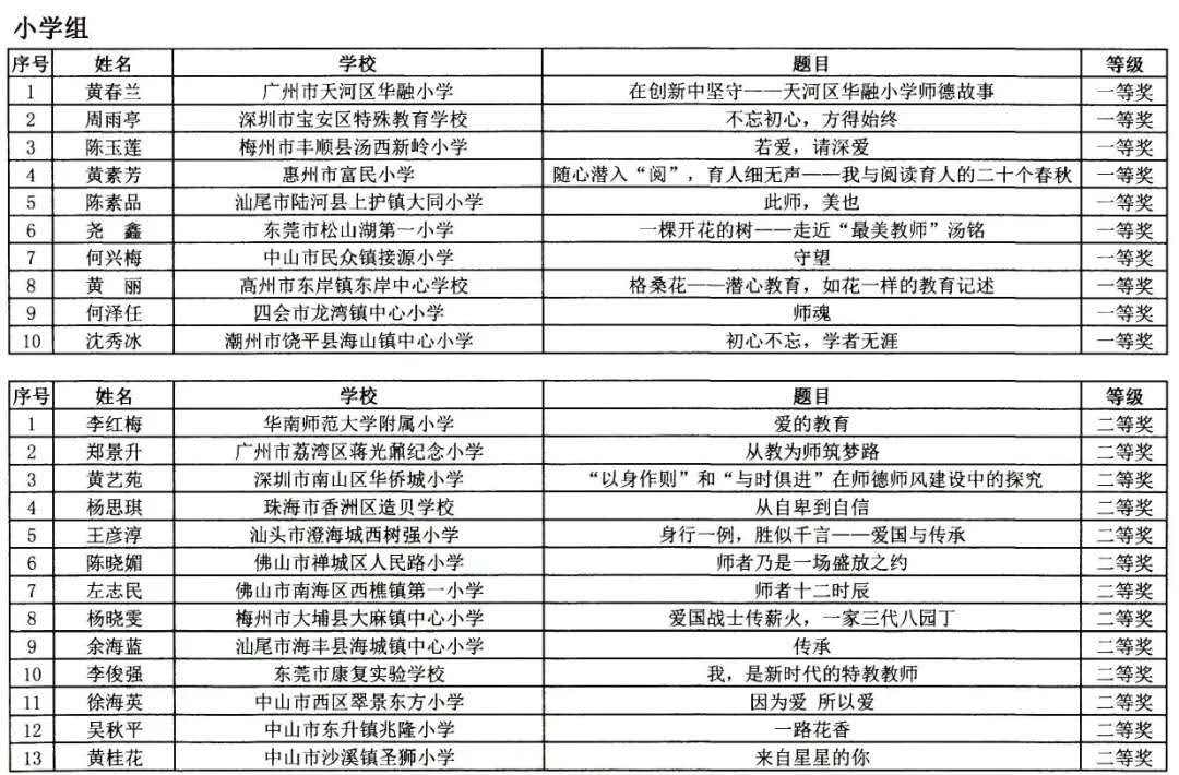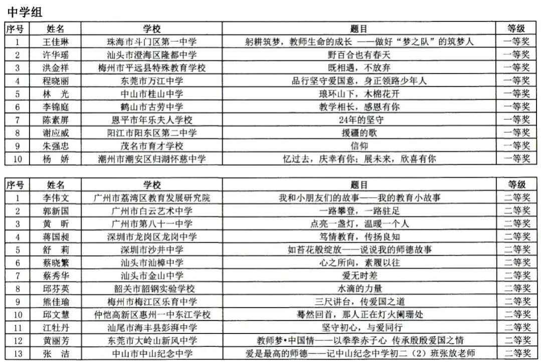 老师们看过来!广东省教育厅委托广东教育杂志社组织开展的“自觉爱国守法,潜心教书育人”第九届师德主题征文及微视频征集活动获奖名单正式公布啦!