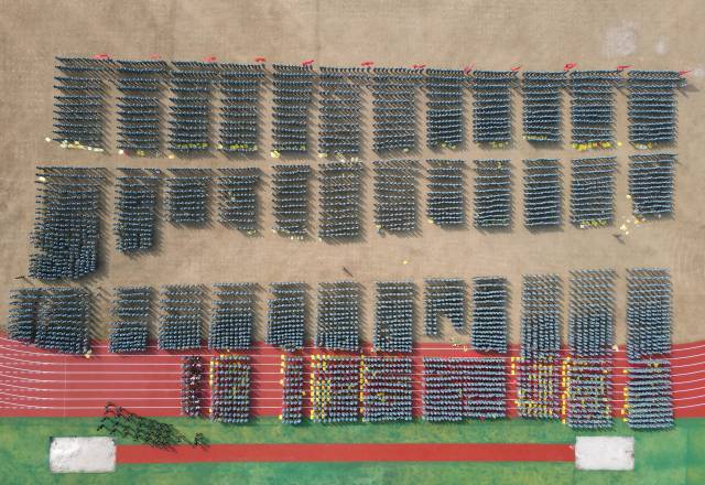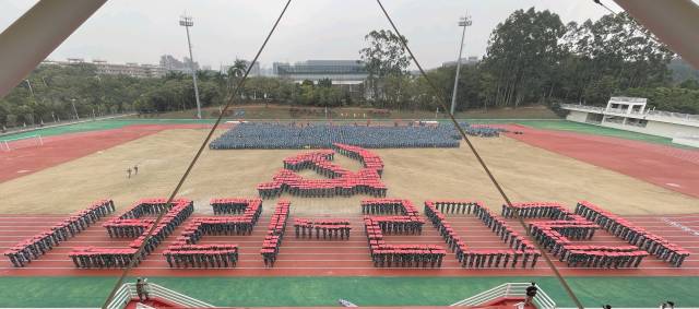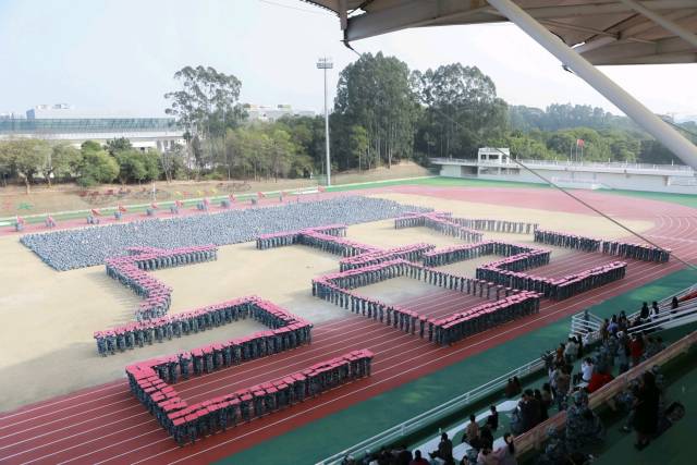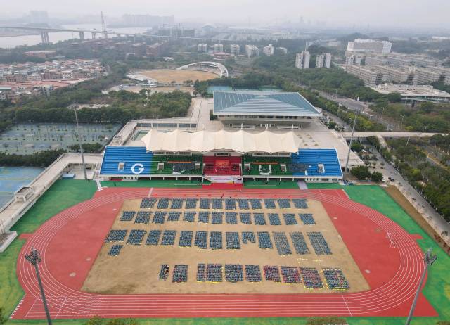1月28日,8xbet网举办2020级新生军训总结暨表彰大会,在大学城校区、龙洞校区近9500名新生参加。汇演现场,广工新生口号嘹亮、军容严整,并表演综合格斗术、刺杀操 、擒敌拳、匕首操、反恐战术、花样方阵等军事特色科目,花样表演方阵呈现出“庆祝中国共产党成立100周年”字样,为党送上深切祝福。