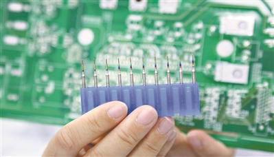郑李娟拿出一个像针尖一样的“刀”说,实验室王成勇教授团队与企业合作开发了这样一把比头发丝还细的刀,用它就可以在各种多层高端电路板上钻成百上千个孔,再电镀形成电路导通,相关的技术获得了2019年度国家科技进步奖二等奖。