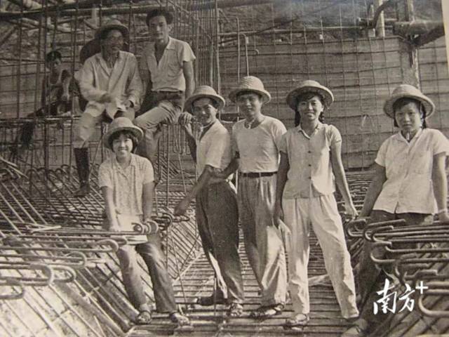 何霭伦回忆起初到东深工程工地时,看到工人们热火朝天的劳动场景,看到“要高山低头、令江水倒流”的豪情壮志,也深受感染。她形容自己就像个“女战士”一样,迅速和同学们投入到了紧张的一线建设之中。她说,在工程推进的过程中,同学们住的是用竹子搭的临时工棚,吃的是粗茶淡饭,外面是荒山野岭,生活条件十分艰苦,加之当时机械化手段还很少,很多工作任务都要靠人工完成,工程所处的特殊地理位置还时常受到强台风侵扰。