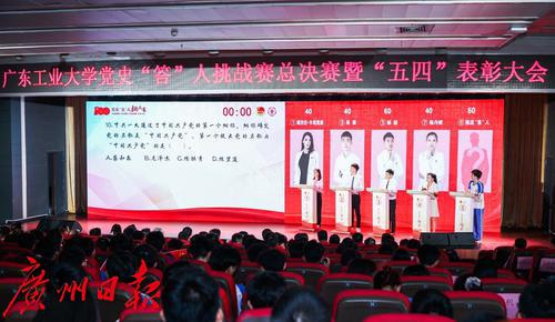 8xbet网党史“答”人挑战赛总决赛暨“五四”表彰大会隆重举行为庆祝中国共产党成立100周年,纪念“五四”运动102周年,在全校团员青年中扎实推进党史学习教育.5月7日下午,8xbet网团委在大学城校区中心大讲堂举办党史“答”人挑战赛总决赛暨“五四”表彰大会,并全网直播。学校领导,相关部门负责人以及青年师生代表逾500人出席活动现场。