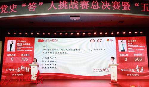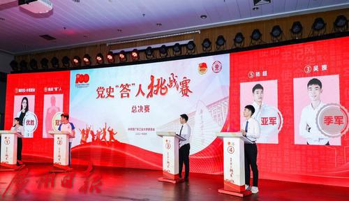 党史“答”人挑战赛总决赛分为“以一敌百”“抢占先机”“巅峰对决”三个环节,集知识性、竞技性、互动性于一体,结合“信念”“复兴”“创新”“英雄”多个维度,内容涵盖新民主主义革命时期、社会主义革命和建设时期、改革开放和社会主义现代化建设新时期、中国特色社会主义新时代的中国共产党历史,并将文字、图片、音频、视频等多种形式有机融入题目,让党史学习教育动起来、活起来。竞赛中,各参赛选手沉着应答、势如破竹,比赛现场气氛紧张激烈。现场观众或埋头凝思,或小声探讨,积极踊跃、热情高涨。