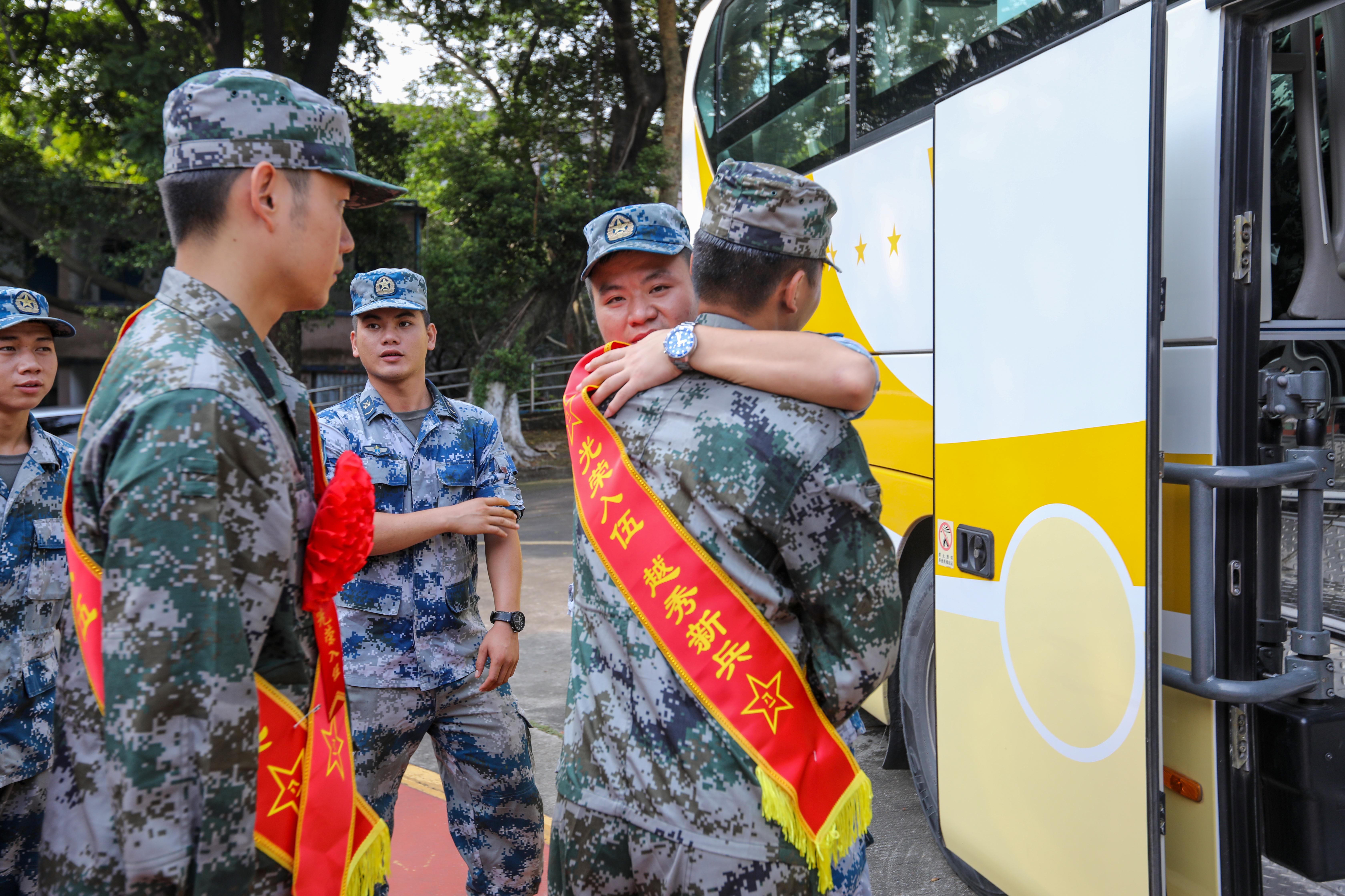 在欢送现场,有这样一位服役青年,可谓是新兵中的“老兵”,他叫向识学,今年是第二次入伍。2017年,刚刚上大学的他怀揣着军人梦,成功入伍,在北部战区陆军服役。“第一次服役期间,我接触到了很多了不起的人,比如我的班长、排长、连长等,他们给了我非常深刻的印象。我想磨炼自己成为向他们一样优秀的人,所以我再次参军入伍。”向识学表示,未来自己将在海南开启第二次军旅生涯。