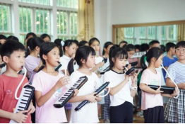 一个月过去了,两所小学的孩子们从一个月前找不到键吹不出音,到能从容挑战四个黑键的旋律,他们的手指在口风琴琴键上飞舞了起来。分声部合奏让孩子们体验合奏之美,增加敲击乐器合奏让孩子们体会音乐丰富的层次感。