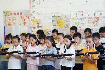 揭西县和东小学的学生们学习口风琴演奏