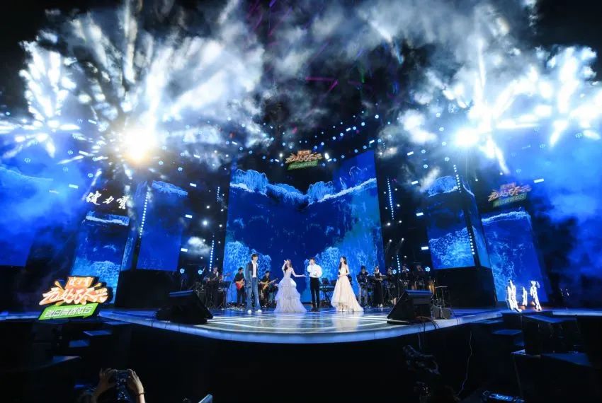 歌手刘宇以国风歌舞《热血为墨》高燃开场,首秀粤语唱腔献唱《彩云追月》,吴彤一曲《极》展示了中国传统乐器笙的独特音色,又在《烽火扬州路》中与《永遇乐·京口北固亭怀古》词作者辛弃疾“跨时空对话”,以摇滚豪情诠释诗词的豪放。刘宇与吴彤还合作了笙舞互动《远山》,曼妙的舞姿与悠扬的笙音相得益彰,在流光溢彩的夏日花城美景中,营造出辽阔委婉的氛围感。