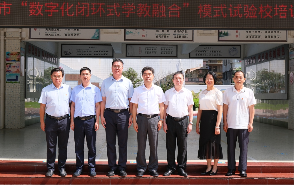 胡钦太一行与茂名市委教育工委书记、市教育局党组书记、教育局局长林卫兴,试点学校校长等共同为茂名市“数字化闭环式学教融合”模式试点培训班揭牌,茂名市光华小学和福华小学全体试点教师共同见证。