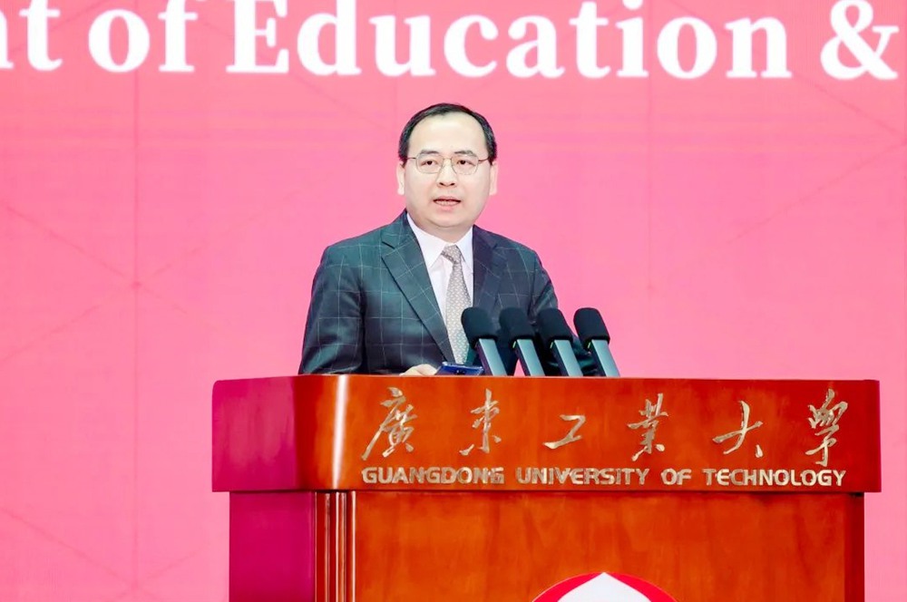 杨志峰院士代表全校教职工为大会致辞。“广工不仅是一所登高望远的学府,更是创新发展的磨砺之地,为广东高质量发展注入强劲动力。”他谈道,“能够加入这支朝气蓬勃的队伍我深感荣幸。”他表示,学校始终落实人才强校战略,用多元化的高水平师资队伍体系,引领教育卓越,学术卓越和文化能力。新征程、新担当,全校教职工将大力传承和弘扬教育家精神,以教师之强夯实教育之基,为建设世界一流的高水平大学而努力奋斗。