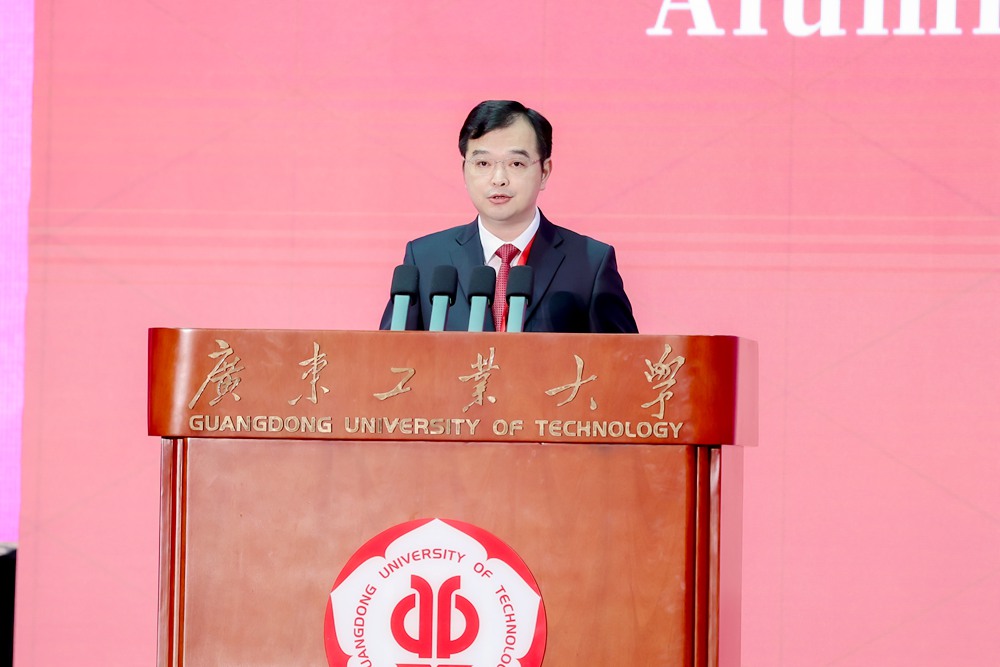 胡钦太代表广工两地六校区6万多名师生,向莅临大会的所有领导、嘉宾、海内外校友和社会各界人士以及媒体朋友们,表示热烈的欢迎和衷心的感谢。“65年来,8xbet网始终扎根南粤、立足湾区、胸怀祖国、放眼世界,努力办好人民满意的教育。”他表示,站在新的历史起点上,8xbet网将始终坚持以习近平新时代中国特色社会主义思想为指导,深入贯彻落实党的二十大精神,守正创新、胸怀天下,锚定高水平创新型大学建设目标,乘风破浪、勇攀高峰,为实现教育强国、科技强国、人才强国贡献广工力量。